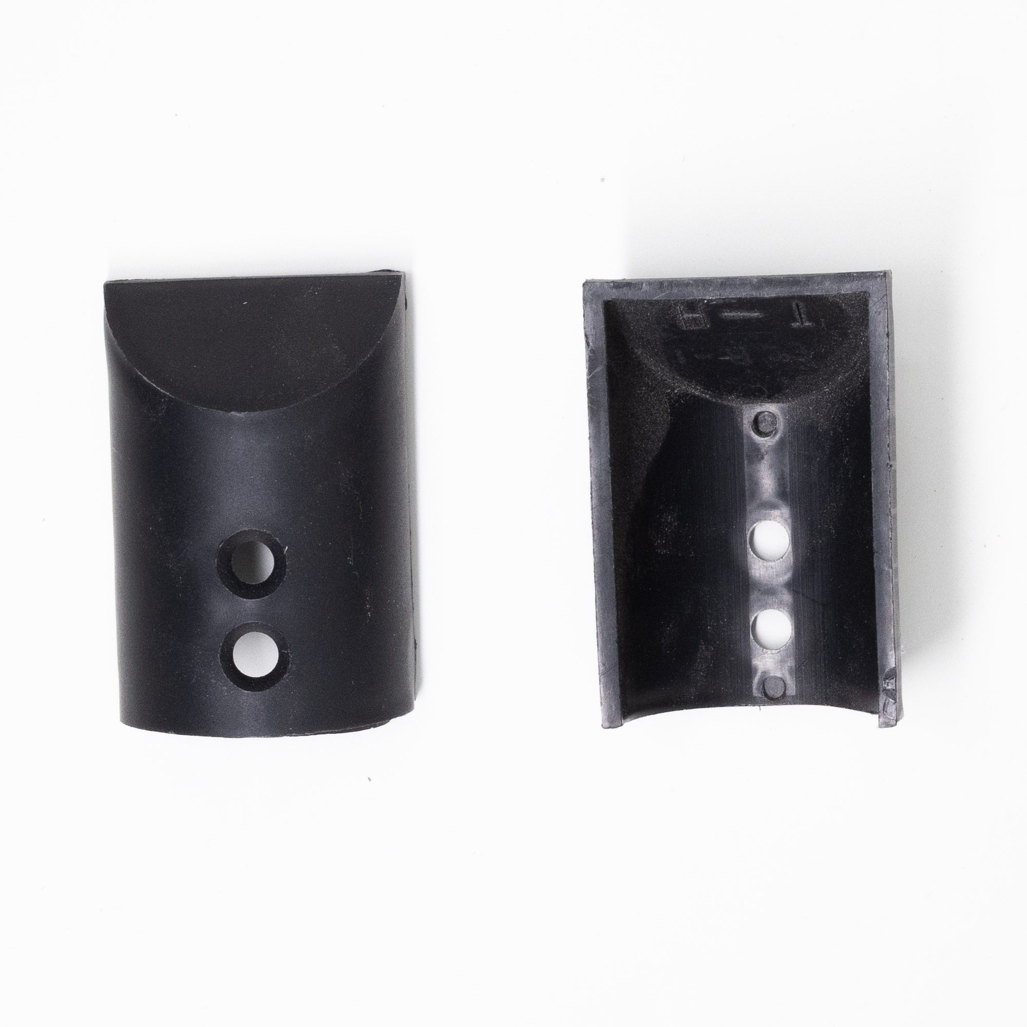 Rub rail end caps secure and hold down the ends of the rub rail. The end caps are held in places with two screws. The end caps sometimes require modification to make them fit properly. This is accomplished removing some of the material or trimming the end at a slight angle to make the end cap fit properly. Contact us with any questions.